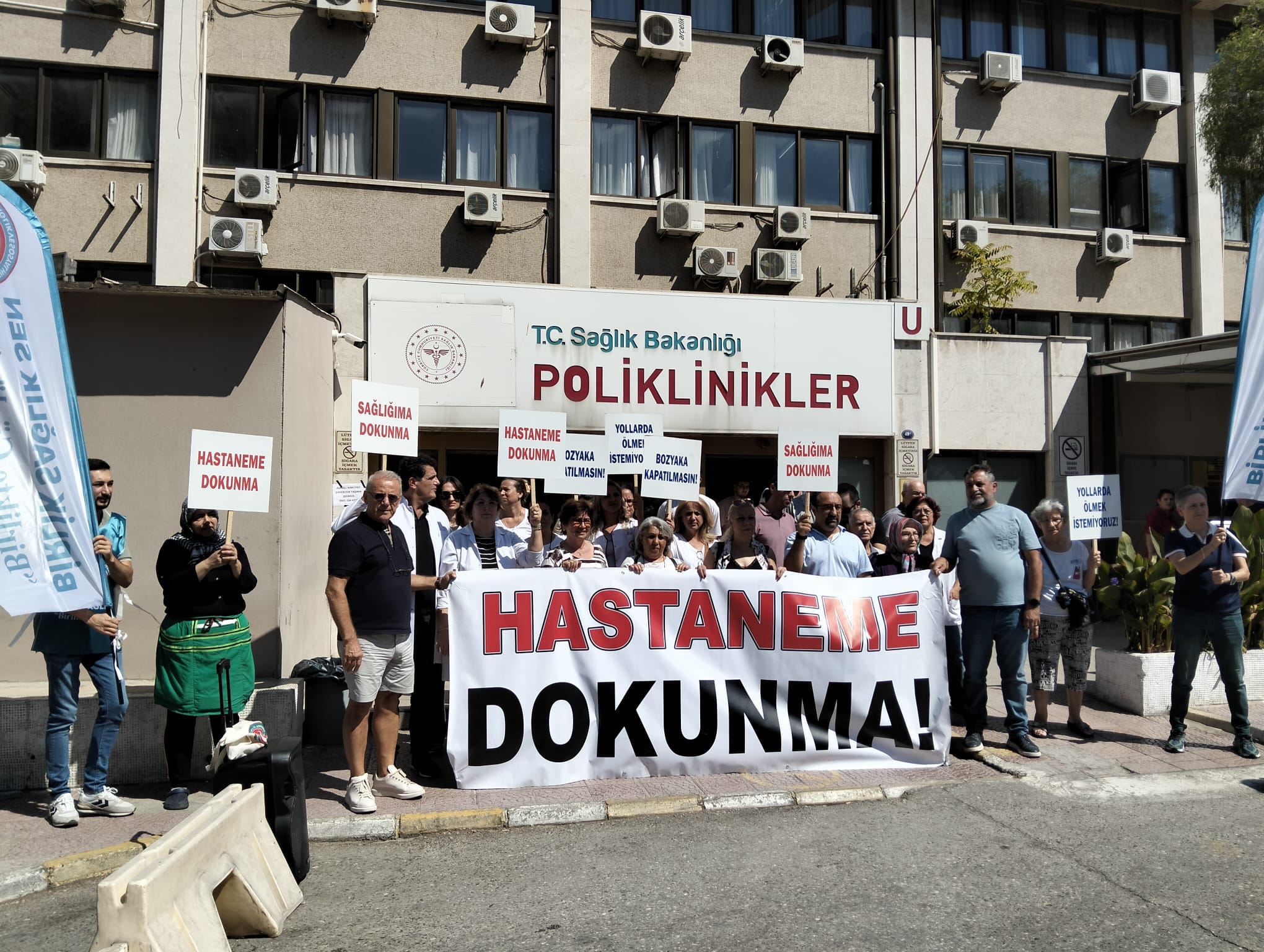 ERKAN DOĞAN’IN HABERİİzmir’de kapatılarak yerine yenisinin yapılacağı belirtilen Bozyaka Eğitim ve Araştırma Hastanesi’ne bölgede yaşayan ve hastaneden hizmet alan vatandaşlar sahip çıktı. ‘Hastaneme Dokunma’ pankartı açan hastalar, “Hastanemize dokunmayın” sloganı atarken, “Bayraklı Şehir Hastanesi’ne giderken yolda ölmek istemiyoruz” diye konuştu. Eylemde yer alan Birlik Sağlık Sen Genel Başkanı Ahmet Doğruyol ise, “Hastanenin kapatılmasındaki amaç nedir açıklanmalı! Hastane kapatılmadan blok blok inşa edilebilir” dedi.“YENİLENİRKEN HİZMETLERİNE DEVAM ETMELİDİR”