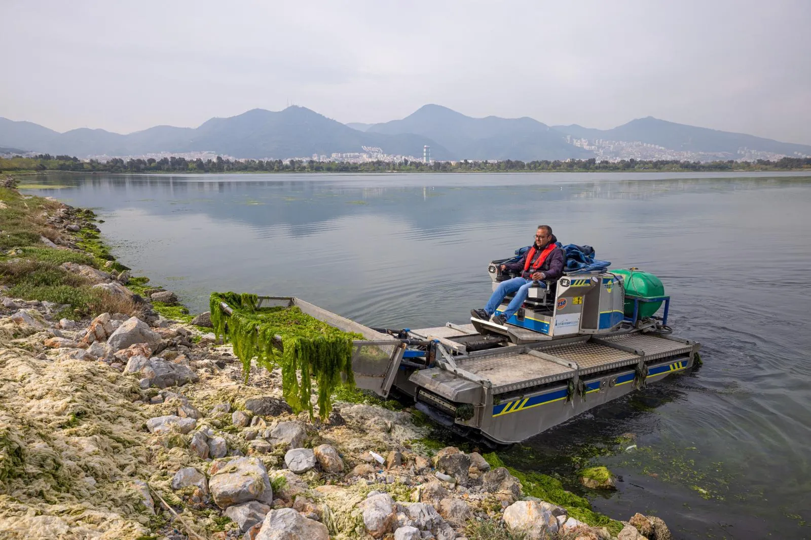 İzmir Büyükşehir Belediyesi, Çakalburnu Lagünü’nde mevsimsel olarak oluşan deniz marullarının gel-git ve akıntı etkisiyle İzmir Körfezi’ne yayılmasını kontrol altına almak için deniz ve karada eş zamanlı çalışma yürütüyor. Son 10 günde yaklaşık 20 ton yosunun toplanarak bertaraf edildiği çalışmalarda, ekolojik dengenin korunması ve kıyı şeridinde yaşam kalitesinin olumsuz etkilenmemesi hedefleniyor.
