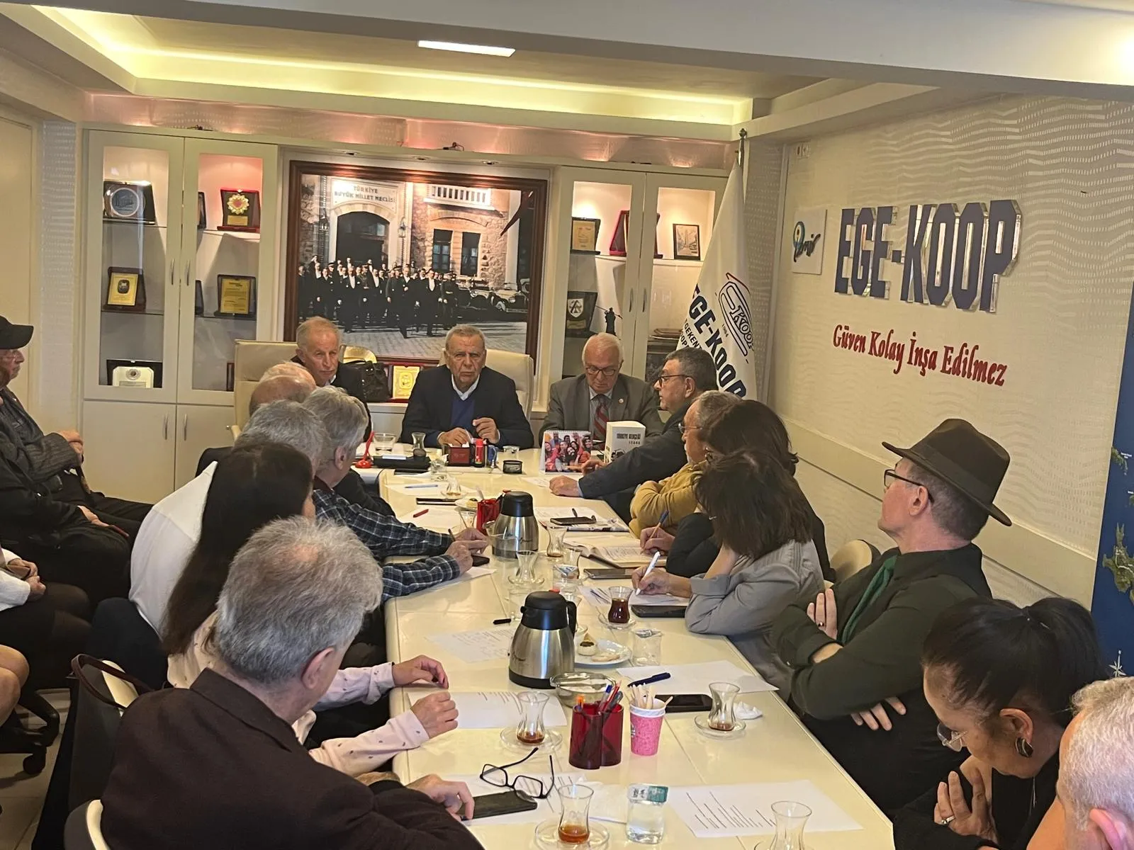Aynı zamanda Ege-Koop Danışma Kurulu üyesi de olan Aziz Kocaoğlu, diğer üyelerin İzmir’in sıkıntılarıyla ilgili sorularını, “İzmir Sohbeti” etkinliğinde yanıtladı. Meslek Fabrikası’nın tahliyesini, Alsancak Limanı’nın geleceğini değerlendirdi, “Türkiye’nin üçüncü büyük kenti, merkezi idare tarafından cezalandırılıyor. İzmir bunu kesinlikle hak etmiyor” dedi.