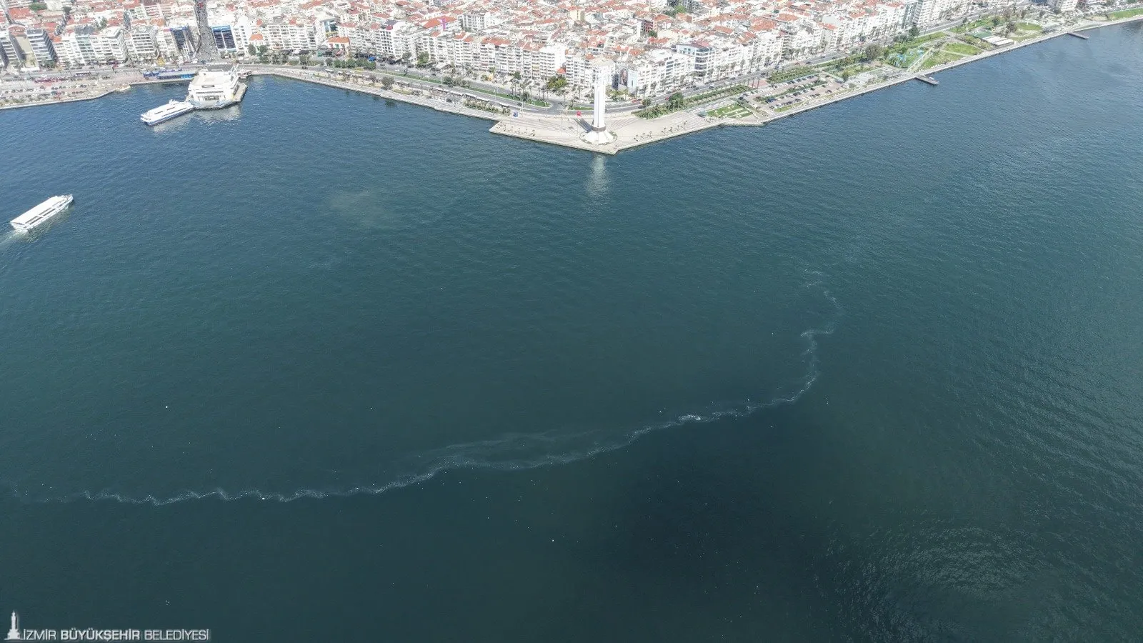 İzmir Büyükşehir Belediyesi tarafından İzmir Körfezi’nde yapılan rutin dron tarama faaliyetleri kapsamında kasım ayından bu yana dokuzuncu kez dış kaynaklı kirlilik tespit edildi. Karşıyaka İskelesi civarında deniz yüzeyinde dış atık maddeler görüntülendi.