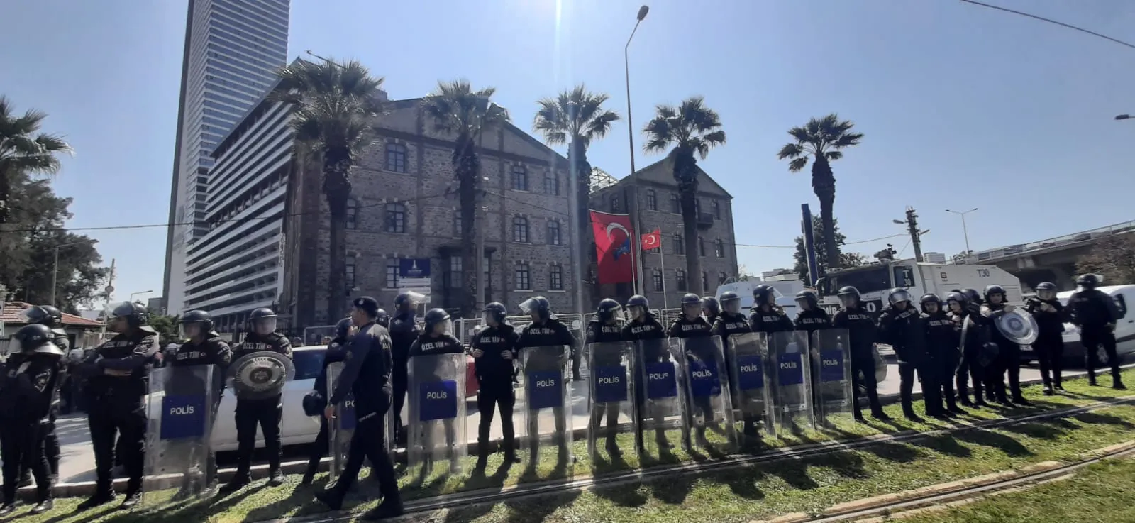 CHP’li vatandaşlar ve belediye çalışanları, indirilen pankartı Yeşildere Caddesi üzerindeki köprüye asmak istediler. Ancak polis, pankartın asılmasına engel oldu. Bu arada yolu trafiğe kapatan vatandaşlarla polis arasında arbede çıktı. Polis göz yaşartıcı spreyle müdahale etti. Bu sırada CHP İl Başkanı Çağatay Güç’ün de gazdan etkilendiği görüldü. Şehitler Bulvarı polis ekiplerinin müdahalesiyle yeniden trafiğe açılırken çevik kuvvet, vatandaşlar ile Şehitler Bulvarı arasında etten duvar ördü.