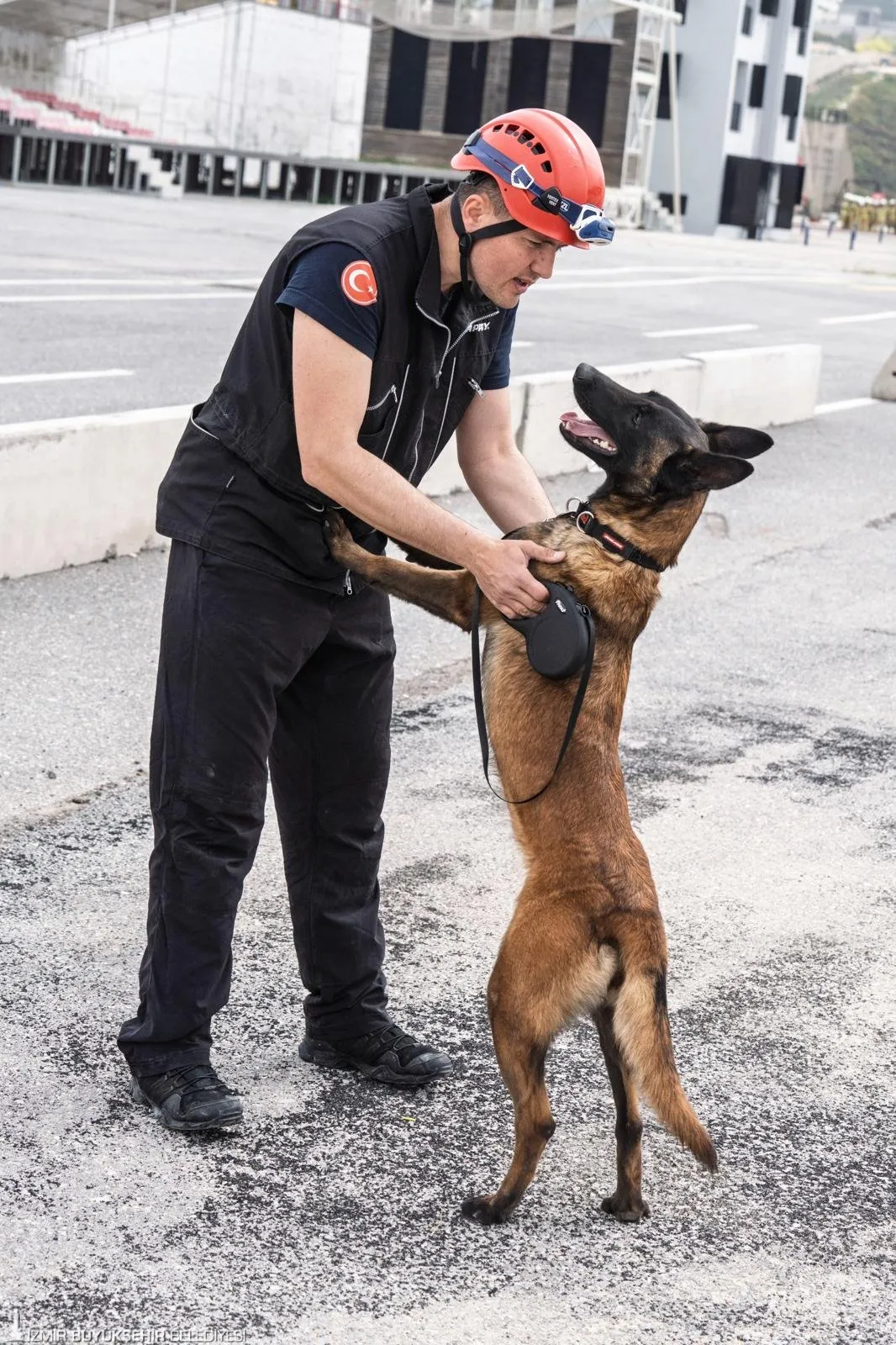 İzmir Büyükşehir Belediyesi İtfaiyesi K9 Birimi, Pako Sokak Hayvanları Kampüsü’nden sahiplendiği Belçika kurdu Momo’yu arama kurtarma köpeği olarak yetiştiriyor. Yaklaşık 6 ayda önemli ilerleme kaydeden Momo, enkaz altında insan hayatına ulaşmak için eğitim alıyor.