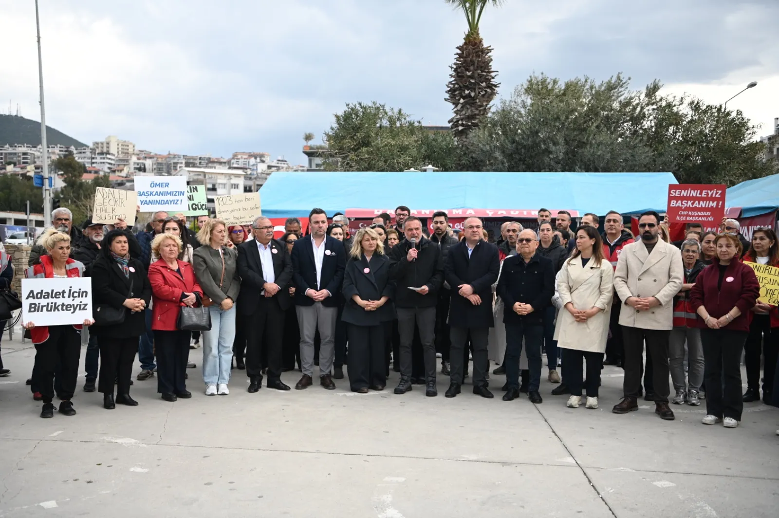 İstanbul Cumhuriyet Başsavcılığı’nın yürüttüğü soruşturmada tutuklanan Kuşadası Belediye Başkanı Ömer Günel, Silivri Cezaevi’nden Aydınlı hemşerilerine bir mektup daha gönderdi. Mektubu, İsmail Cem Dostluk ve Barış Meydanı’nda Başkan Ömer Günel’e destek olmak amacıyla kurulan ‘Adalet ve Dayanışma’ çadırının önünde Cumhuriyet Halk Partisi (CHP) Kuşa