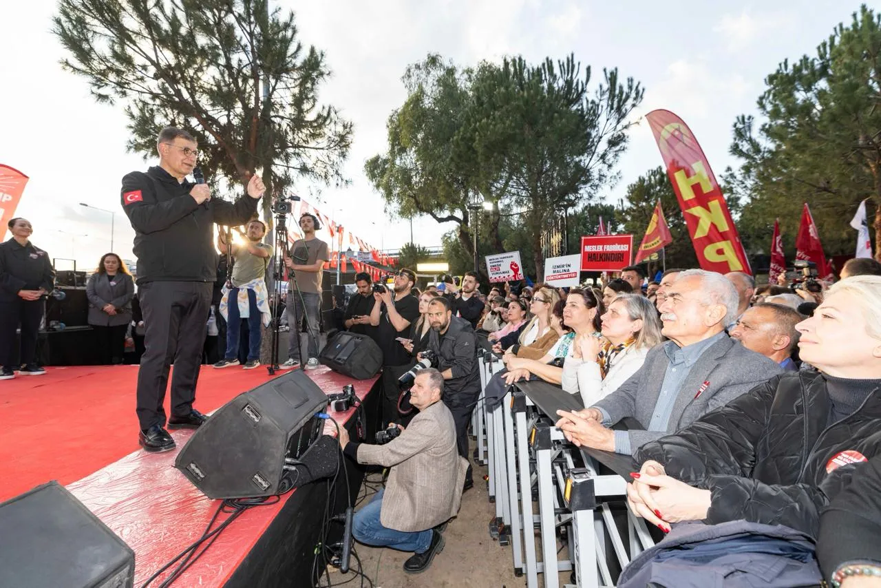 Meslek Fabrikası'nın pazartesi günü sabah saatlerinde polis baskınıyla tahliyesinin ardından binanın önünde direniş nöbetine başlayan İzmir Büyükşehir Belediye Başkanı Cemil Tugay, Meslek Fabrikası'nın karşısındaki ağaçlık alanda CHP İzmir il örgütü ve İzmir'deki sivil toplum örgütleri tarafından düzenlenen mitingde konuştu. Mitinge CHP Genel Başkan Yardımcısı Ulaş Karasu, İzmir Milletvekilleri Deniz Yücel, Ednar Arslan, Rahmi Aşkın Türeli, Ümit Özlale, Mehmet Salih Uzun, Yüsel Taşkın, Servda Erdan Kılınç, Seda Kaya Ösen, CHP İl Başkanı Çağatay Güç, ilçe belediye başkanları, CHP ilçe başkanları, sivil toplum örgütleri, sendikalar, İzmir Büyükşehir Belediyesi çalışanları, CHP il ve ilçe örgütü üyeleri ve vatandaşlar katıldı.