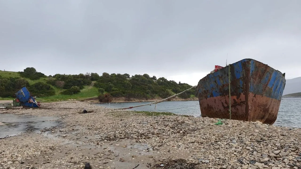 Urla’ya bağlı Demircili Koyu’nda karaya oturan “Gökbey” isimli geminin kaldırılması talebiyle başlatılan eylemler büyüyor.