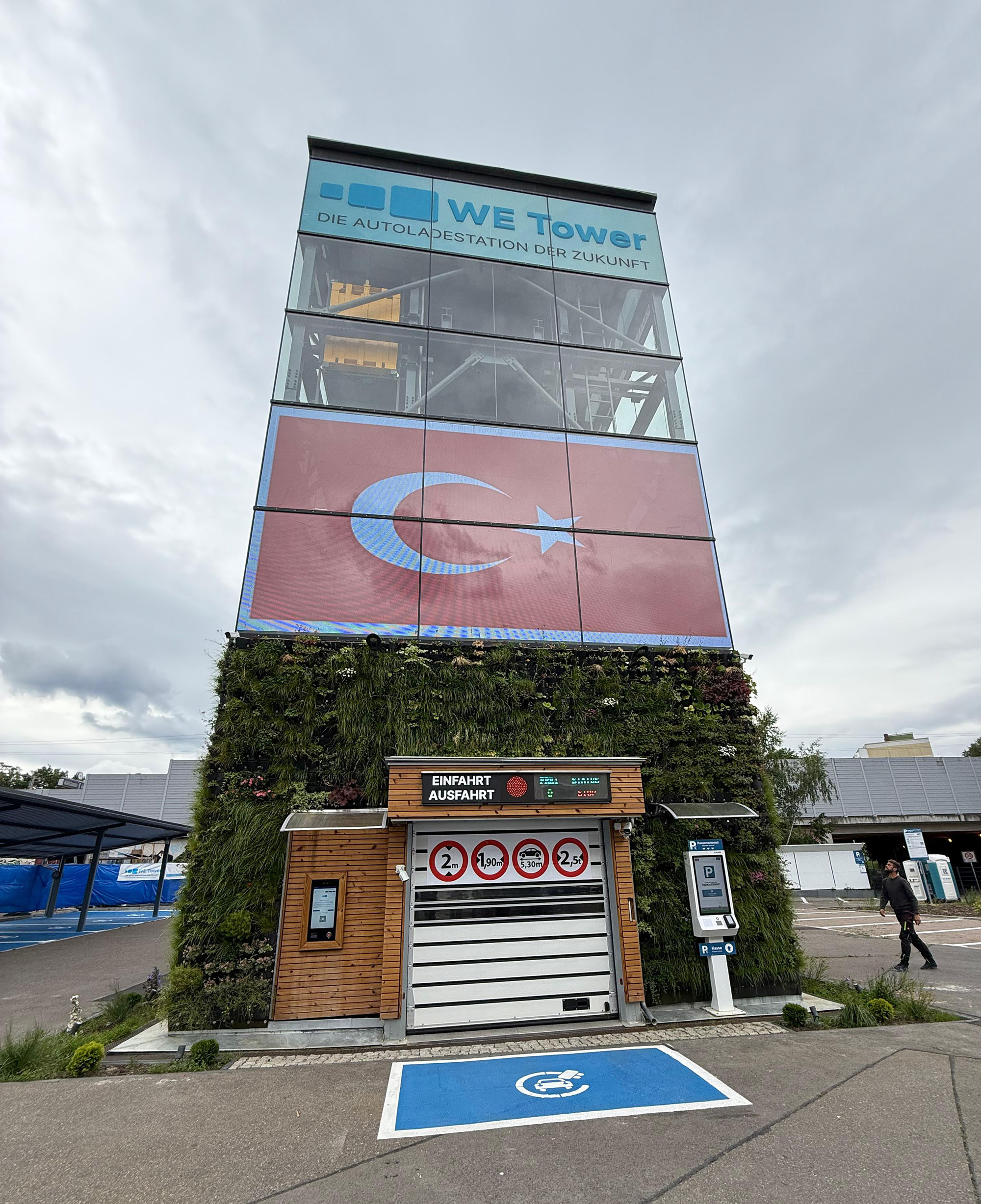 Başkan Ömer Günel Berlin’de, kentsel alanlarda elektrikli araçların şarj edilmesi ve park edilmesi için yenilikçi ve yerden tasarruf sağlayan çözümler sunan Türk bir girişimciye ait akıllı şehircilik uygulaması olan We Tower projesini de yerinde inceledi. 50 metrekarelik taban alanı üzerinde 30 araca kadar park ve sarj edebilme olanağı sunan, yeşil ve sürdürülebilir bir proje olan We Tower’ın Avrupa’da prototip olarak yapımına başlandığını ve kısa sürede yayılacağını ifade eden Başkan Ömer Günel, modelin Kuşadası’nda uygulanabilmesi için takipte kalacaklarını söyledi. Kente 2 bin araç kapasiteli yeni otopark alanları kazandırmaya yönelik çalışmaların devam ettiğinin altını çizen Başkan Ömer Günel “Yaz aylarında 1 buçuk milyona yakın konuk ağırladığımız düşünüldüğünde Kuşadası’nın otopark sorununun sona ermeyeceği aşikâr. Bu nedenle bu tip yeni nesil, çevreci ve sürdürülebilir iyi uygulamaları yakından takip etmeyi sürdüreceğiz” dedi.